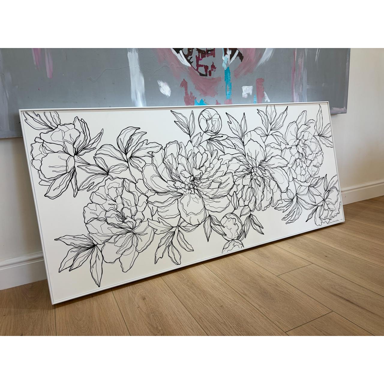 Garden of Growth explores the quiet beauty of nature through flowing linework and intricate botanical detail. Created in black acrylic ink on a white wooden canvas, the piece balances simplicity with complexity — where delicate lines unfold into an organic composition filled with movement and life.