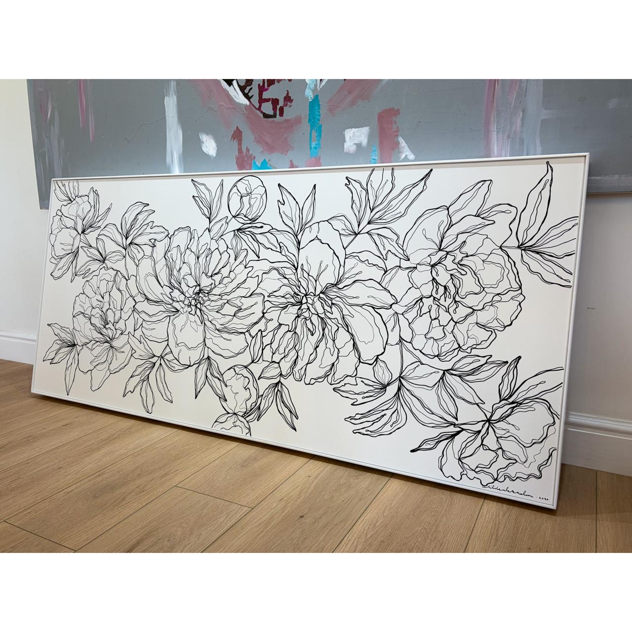 The monochromatic palette enhances the elegance of the work, allowing the refined forms and rhythmic structure to create a sense of calm, harmony, and continuous transformation. Both minimal and richly detailed, the artwork invites the viewer to reflect on natural growth, renewal, and the gentle unfolding of beauty.