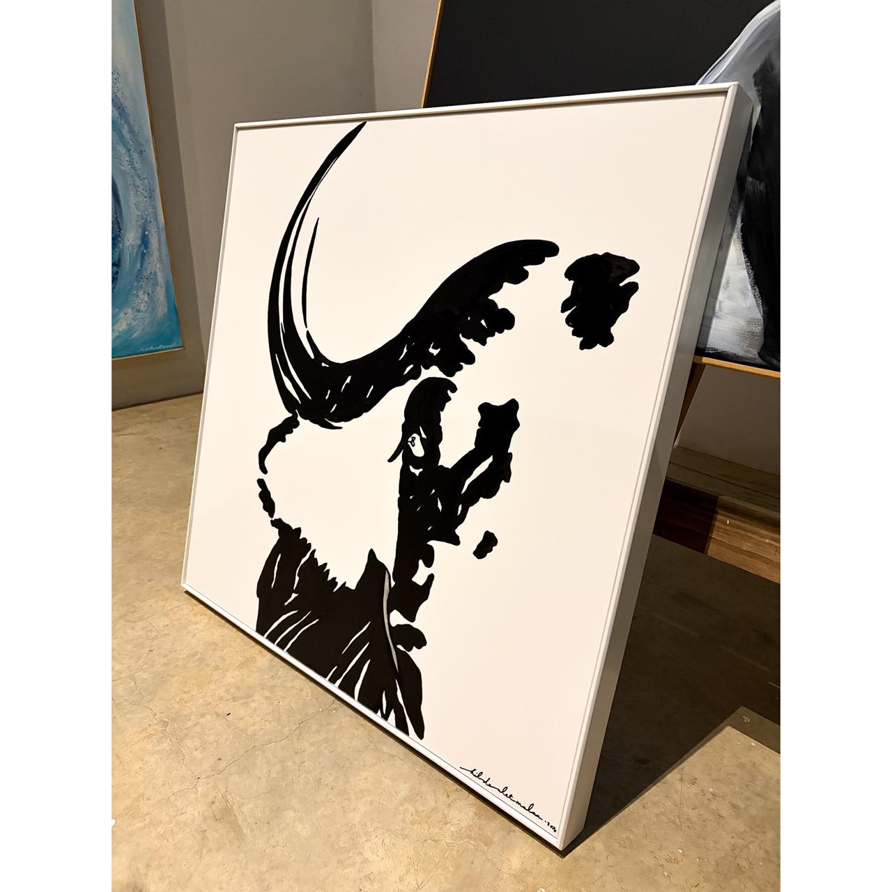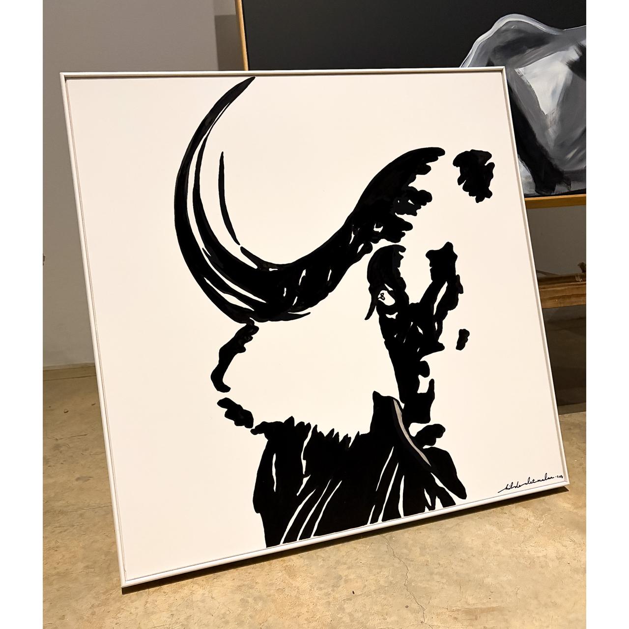 Silent Strength. A powerful yet understated portrayal of a buffalo, rendered in bold black acrylic ink and acrylic paint on a white wooden canvas. The contrast between the deep, expressive marks and the clean white surface allows the buffalo’s quiet authority and resilience to emerge without distraction. Framed in an elegant white frame and ready to hang, this artwork speaks to inner strength, grounded presence, and calm confidence — a timeless statement piece for any space.